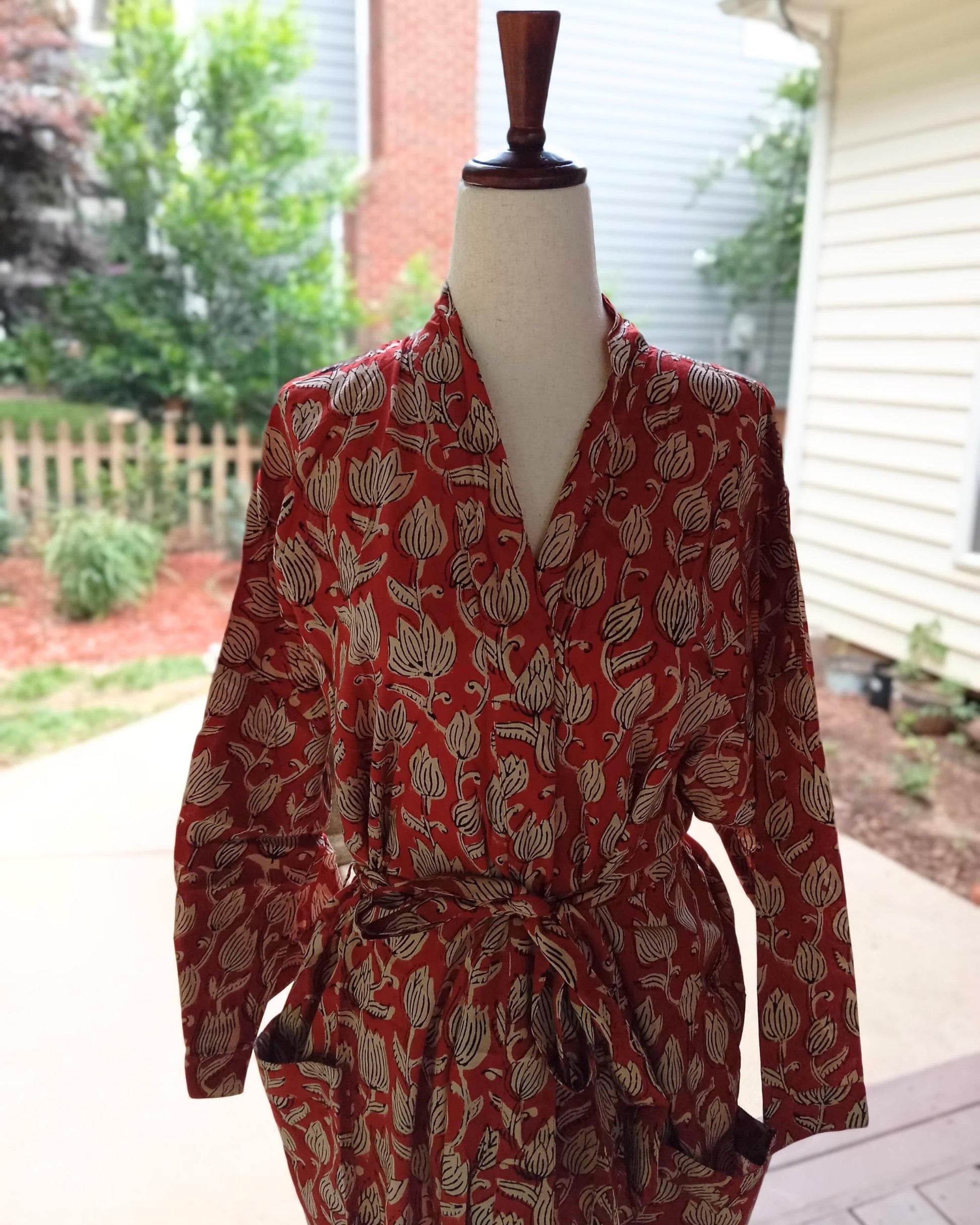 Block Print Cotton Kimono Robe, Indian Floral Robe