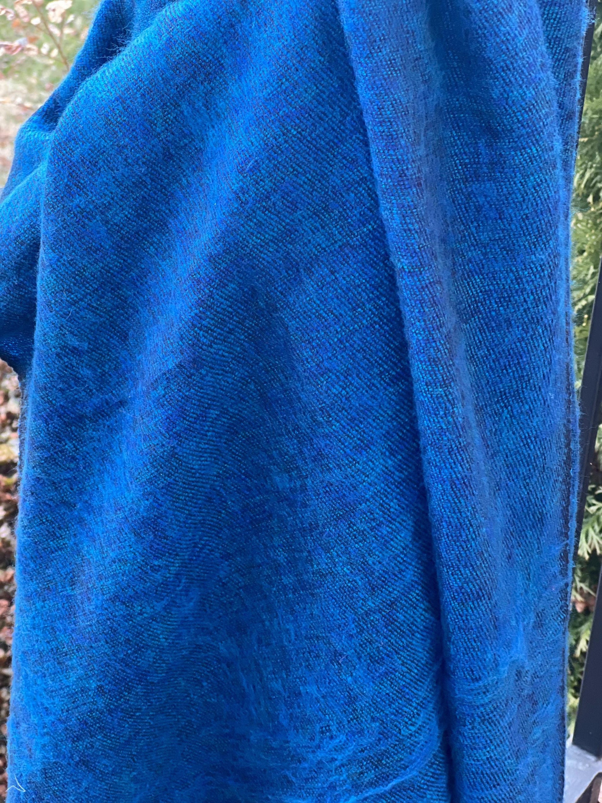 Blue Yak Wool Scarf: Handmade Nepal Shawl, Meditation Blanket