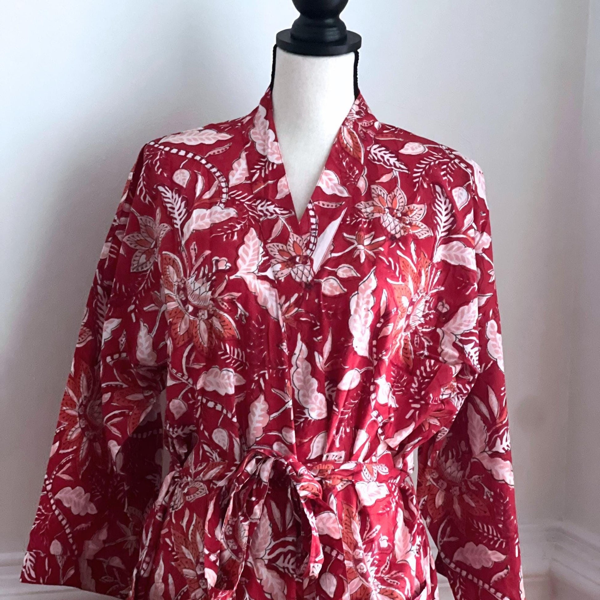 Cotton Kimono Robe, Block Print Floral Dressing Gown, Boho Lightweight Robe