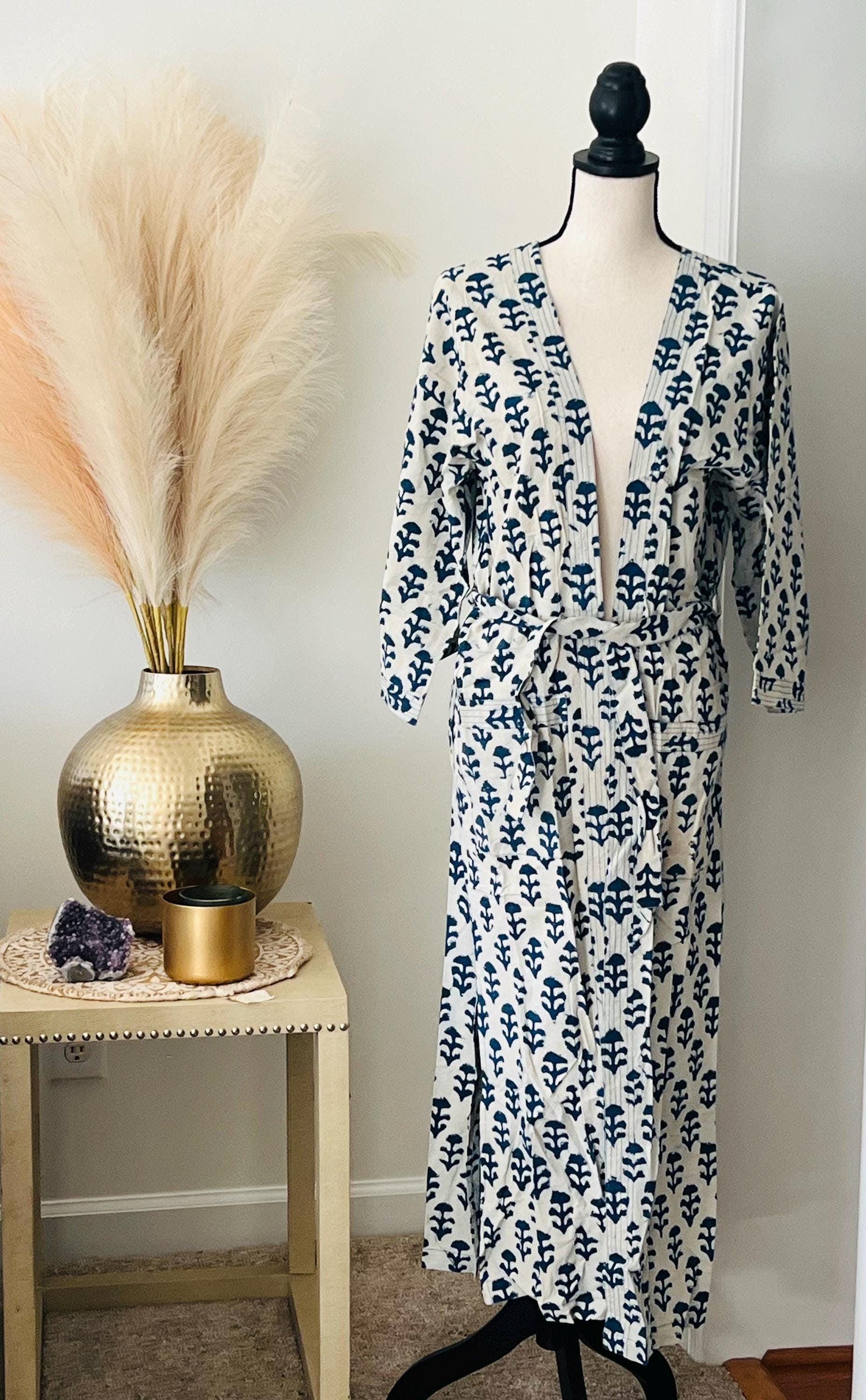 A beautiful lightweight cotton kimono-style hand-printed kimon robe multi style wear robe/kaftan.combined style, quality, and practicality with the women‘s kimono!