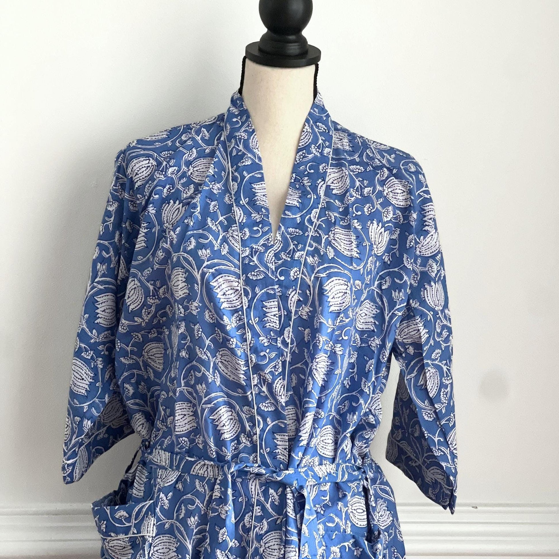 Floral Cotton Wrap Robe, Lightweight Block Print Dressing Gown