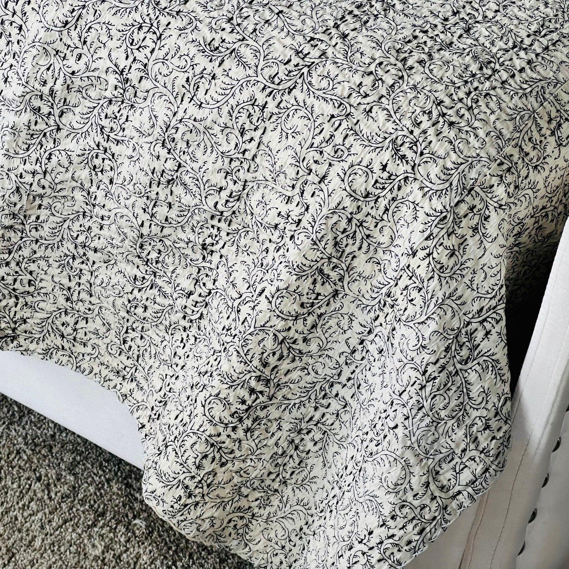 Add a touch of artisan charm to your bedroom with this handcrafted Kantha quilt. Made from 100% pure cotton, this oversized khaki floral coverlet is perfect for layering during spring and summer. Whether used as a lightweight bedspread or a cozy throw, it brings warmth, texture, and timeless elegance to your space. A thoughtful and unique gift for any home décor lover.