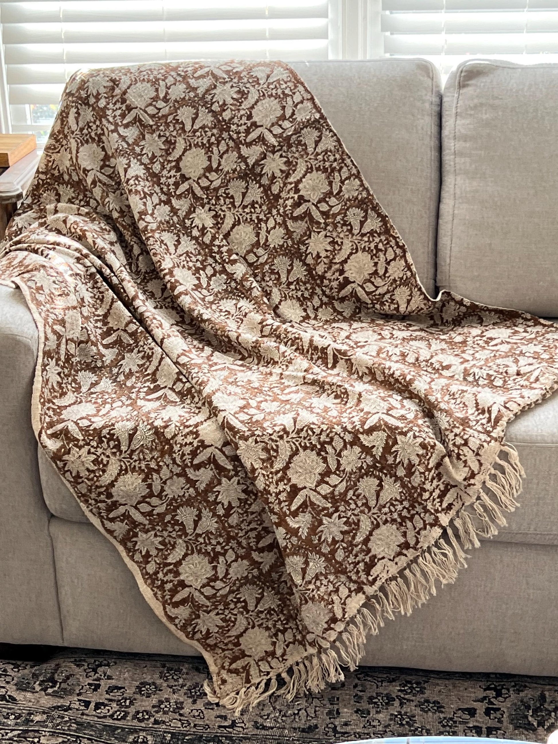 Handmade Cotton Throw Blanket, Hand Block Print, Boho Decor
