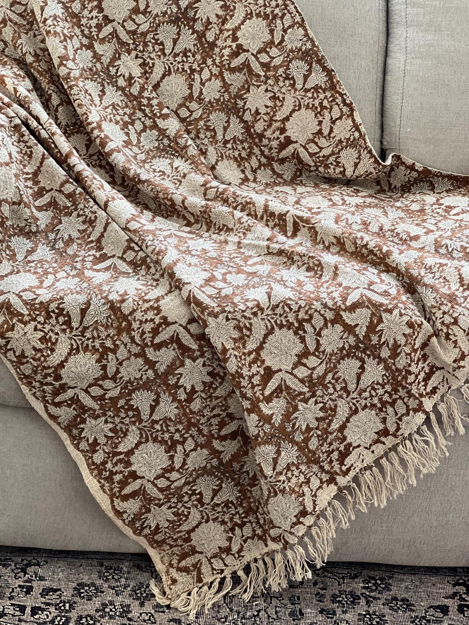 Wash Care - Dry clean only is recommended for the hand-block printed throw blanket to preserve color.