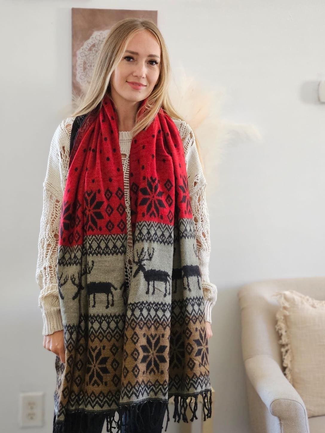 Handmade Yak Wool Reindeer Scarf: Himalayan Winter Shawl