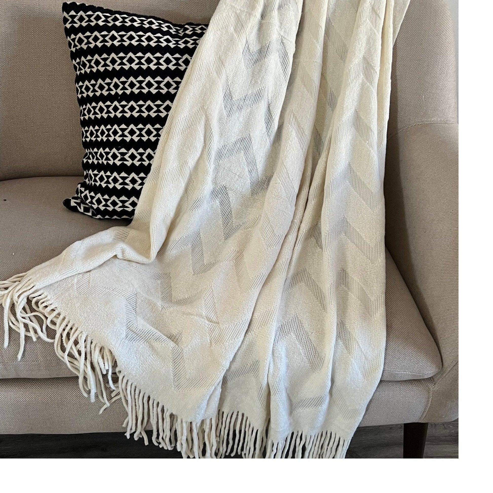 We absolutely love the versatility of this seasonal decoration, whether draped over a couch, elegantly arranged on a bed, or wrapped around, this blanket is a must-have. Can be used as a throw to cover furniture, sofas, and chairs, as a bedspread, folded at the base of a bed, as a cover during naps, or as a rustic decorative piece. Its boho-inspired essence and knitted design seamlessly integrate into various cozy decor styles, adding a touch of elegance and warmth.
