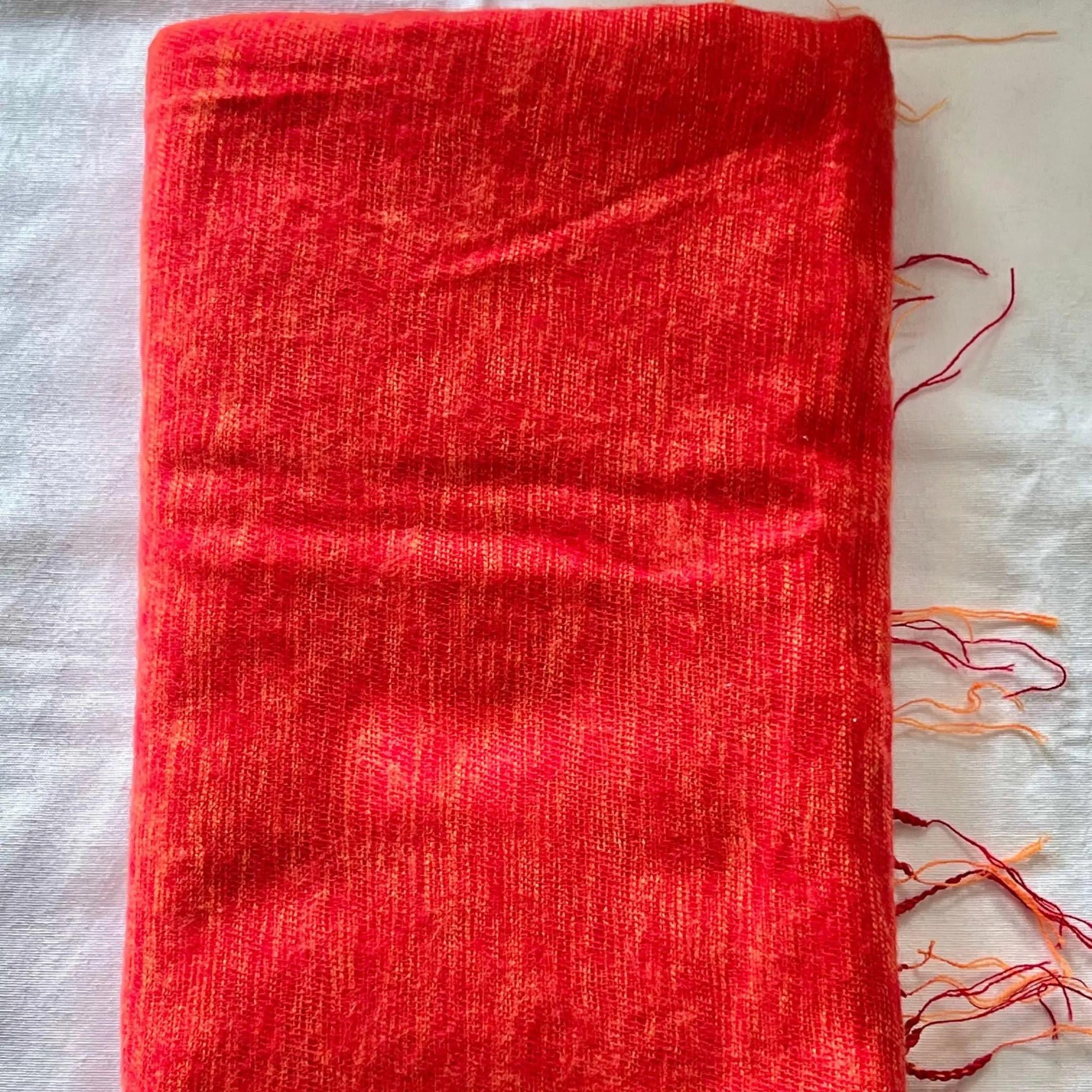Red Orange Yak Wool Blanket Scarf, Handmade Himalayan Nepal Meditation Shawl