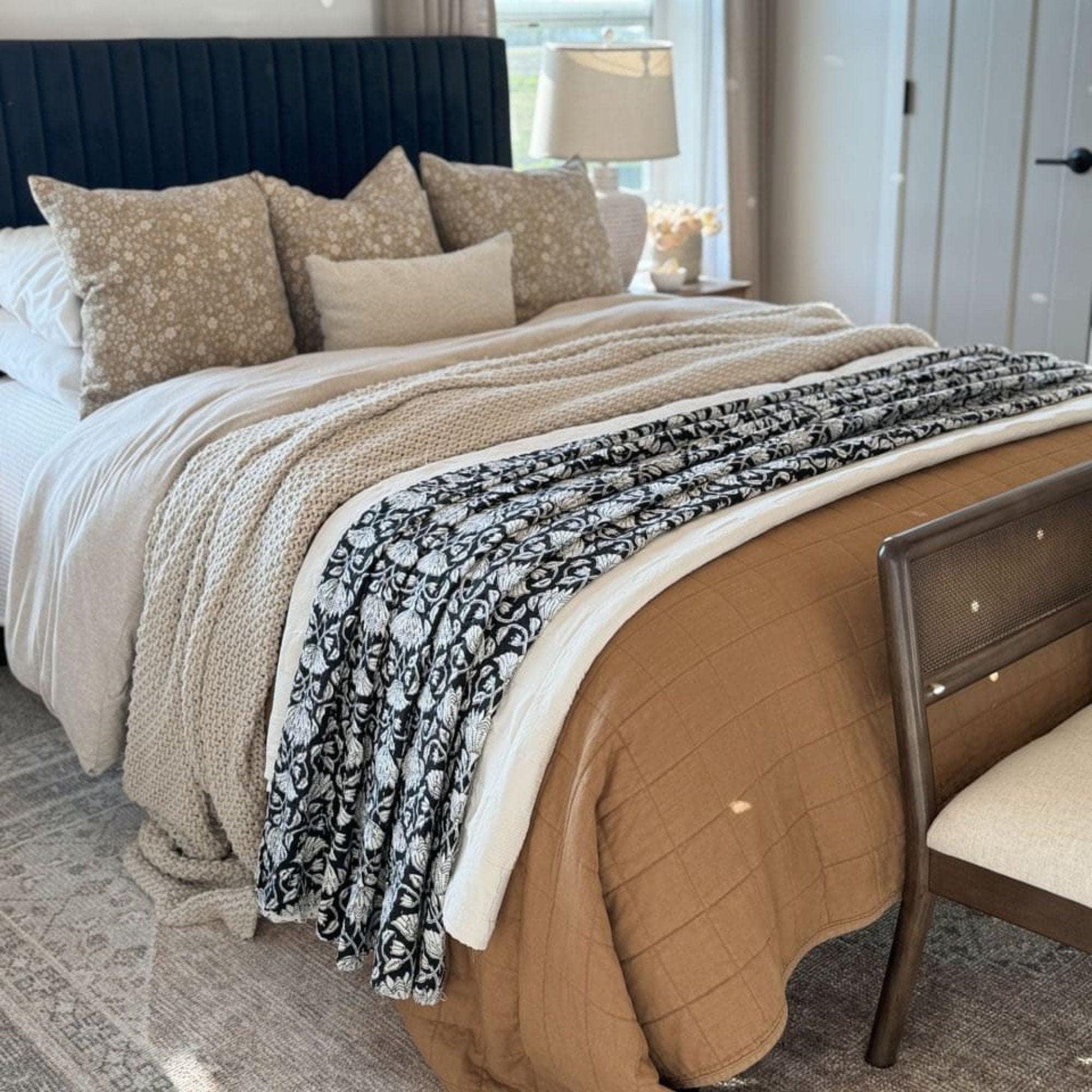 Discover the elegance of our Block Printed Black Kantha Quilt, meticulously handcrafted from 100% Indian cotton. This versatile quilt is available in all sizes, making it perfect for any bed or as a decorative throw. The intricate block print design adds a touch of traditional Indian artistry to your space, while the Kantha stitching ensures durability and a cozy feel, ideal for cold winter nights.